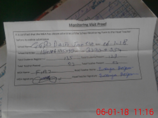 | Attendance Register | Head Teacher | MEA with School | Visit Proof |