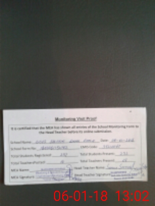 | Attendance Register | Head Teacher | MEA with School | Visit Proof |