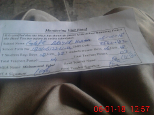 | Attendance Register | Head Teacher | MEA with School | Visit Proof |