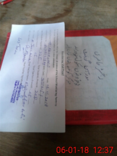 | School Visited by School Health & Nutrition Supervisor (No. of Visits) | Name1: | Muhammad Javid Iqbal | Name2: | Nil | |