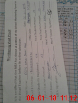 | Attendance Register | Head Teacher | MEA with School | Visit Proof |