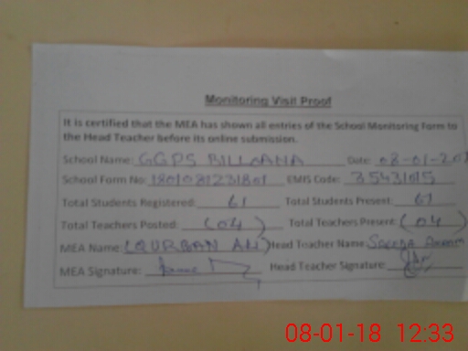 | EMIS Code: 35431015 | Name of School: GGPS BILLU ANA | |||