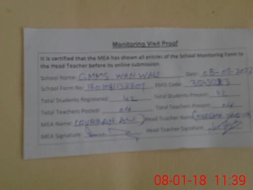 | EMIS Code: 35431223 | Name of School: GPS MASJID WALNWALI | |||