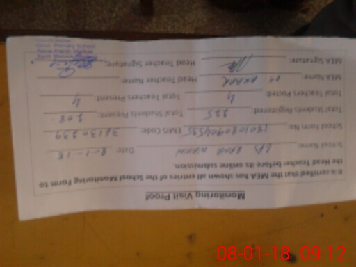 | Attendance Register | Head Teacher | MEA with School | Visit Proof |