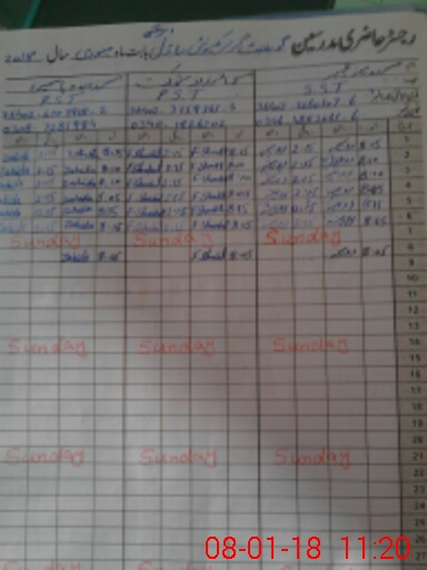 | CNIC | Full Name | Designation | R/C | Absence During Last Calender Month |