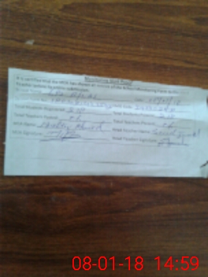 | Attendance Register | Head Teacher | MEA with School | Visit Proof |