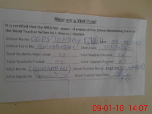 | Certified that this School was Inspected by the Undersigned MEA/DMO Today and the Information Stated Above is as Per Record. | |||||