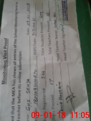 | Attendance Register | Head Teacher | MEA with School | Visit Proof |