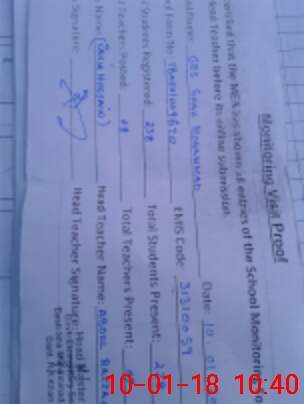 | Certified that this School was Inspected by the Undersigned MEA/DMO Today and the Information Stated Above is as Per Record. | |||||
