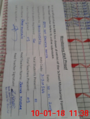 | Monitoring Date: 10-01-2018 | Start Time: 10-01-2018 11:05 AM | End Time: 10-01-2018 11:54 AM | Name of MEA: Za**** Hu**** | |
