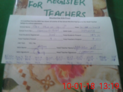 | Attendance Register | Head Teacher | MEA with School | Visit Proof |