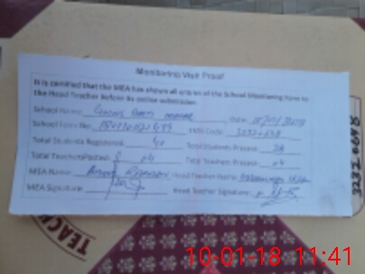 | Attendance Register | Head Teacher | MEA with School | Visit Proof |