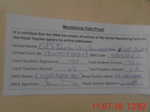 | EMIS Code: 35431222 | Name of School: GPS DERA WAILAN WALA | |||