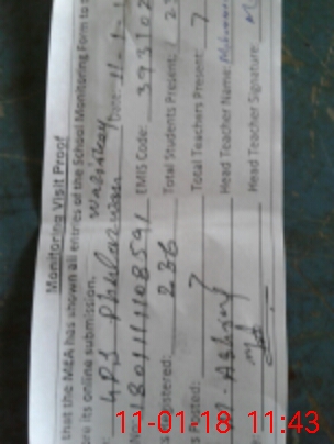 | Attendance Register | Head Teacher | MEA with School | Visit Proof |