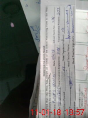 | School Visited by School Health & Nutrition Supervisor (No. of Visits) | 1 | Name1: | KHAWAR HAYAT SHAH | Name2: | |