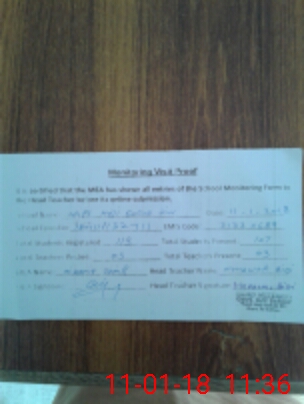 | Attendance Register | Head Teacher | MEA with School | Visit Proof |