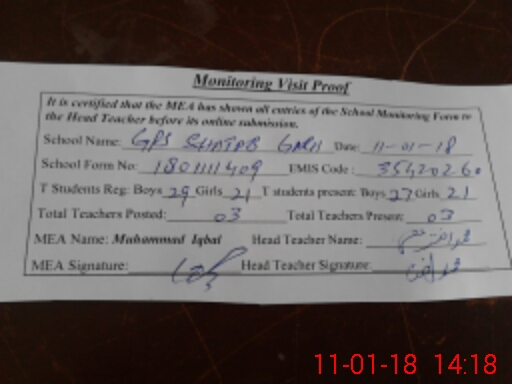 | EMIS Code: 35420260 | Name of School: GPS SHATAB GARH | |||