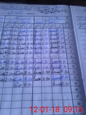 | CNIC | Full Name | Designation | R/C | Absence During Last Calender Month |