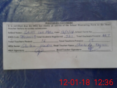 | Attendance Register | Head Teacher | MEA with School | Visit Proof |