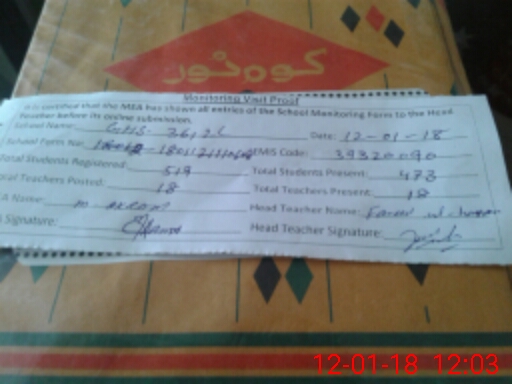 | Attendance Register | Head Teacher | MEA with School | Visit Proof |