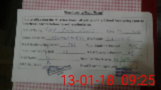 | Monitoring Date: 13-01-2018 | Start Time: 13-01-2018 08:57 AM | End Time: 13-01-2018 09:32 AM | Name of MEA: MA**** HU**** TA**** | |
