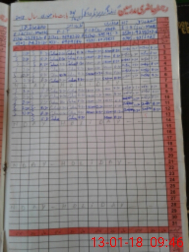 | CNIC | Full Name | Designation | R/C | Absence During Last Calender Month |
