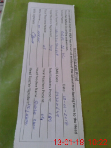 | Attendance Register | Head Teacher | MEA with School | Visit Proof |