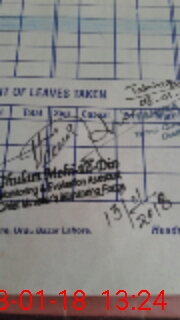 | CNIC | Full Name | Designation | R/C | Absence During Last Calender Month |