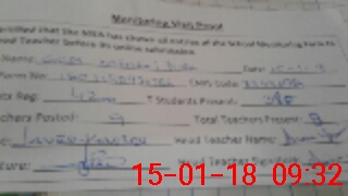 | Attendance Register | Head Teacher | MEA with School | Visit Proof |