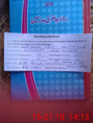 | Name: SH**** MU**** Designation: (School Headmaster's/Headmistress's) PST Phone/Cell Number: 03**** |