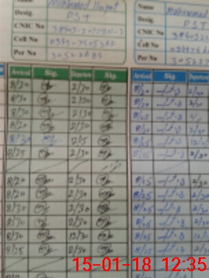 | CNIC | Full Name | Designation | R/C | Absence During Last Calender Month |