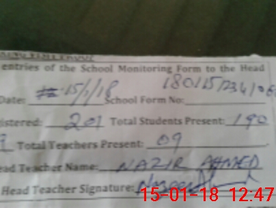 | Attendance Register | Head Teacher | MEA with School | Visit Proof |