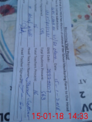 | School Visited by School Health & Nutrition Supervisor (No. of Visits) | 1 | Name1: | Muhammad Akram | Name2: | |