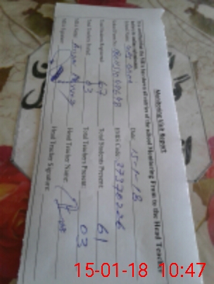| Monitoring Date: 15-01-2018 | Start Time: 15-01-2018 10:28 AM | End Time: 15-01-2018 11:04 AM | Name of MEA: Rt**** AN**** PE**** (R**** | |