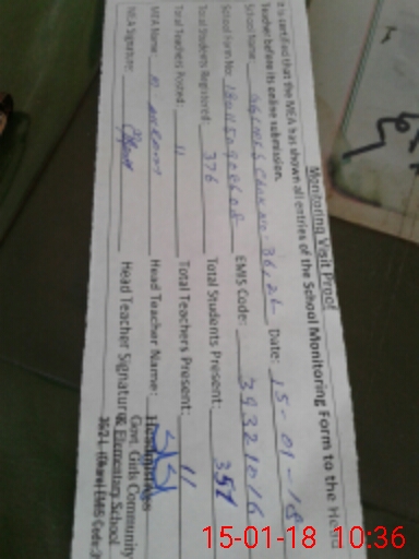 | Attendance Register | Head Teacher | MEA with School | Visit Proof |