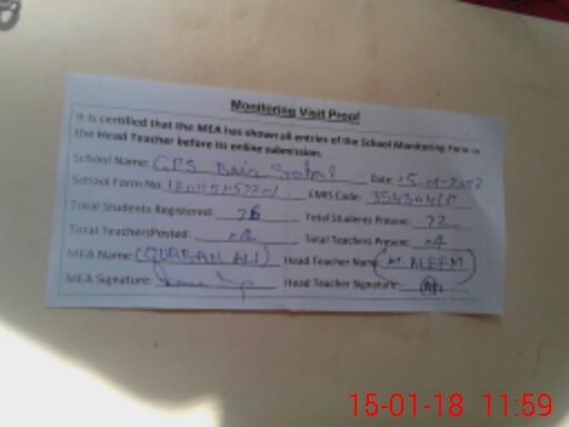 | Attendance Register | Head Teacher | MEA with School | Visit Proof |