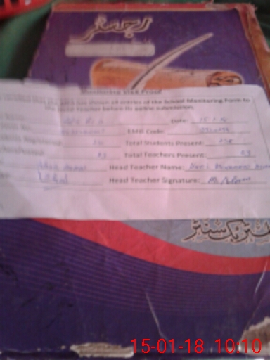 | School Visited by School Health & Nutrition Supervisor (No. of Visits) | 1 | Name1: | Muhammad Umar | Name2: | |