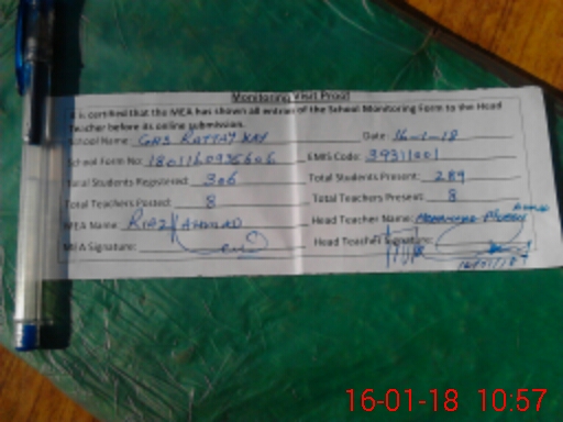 | Attendance Register | Head Teacher | MEA with School | Visit Proof |