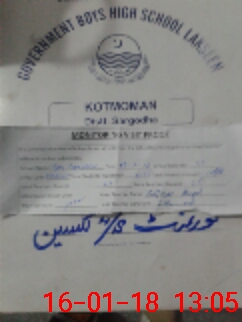| Name: MU**** KH**** ME**** Designation: (School Headmaster's/Headmistress's) Principal Phone/Cell Number: 03**** |