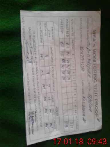 | Attendance Register | Head Teacher | MEA with School | Visit Proof |