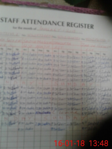 | CNIC | Full Name | Designation | R/C | Absence During Last Calender Month |