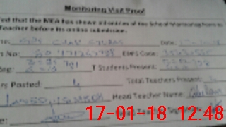 | Attendance Register | Head Teacher | MEA with School | Visit Proof |
