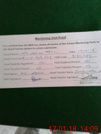 | Attendance Register | Head Teacher | MEA with School | Visit Proof |
