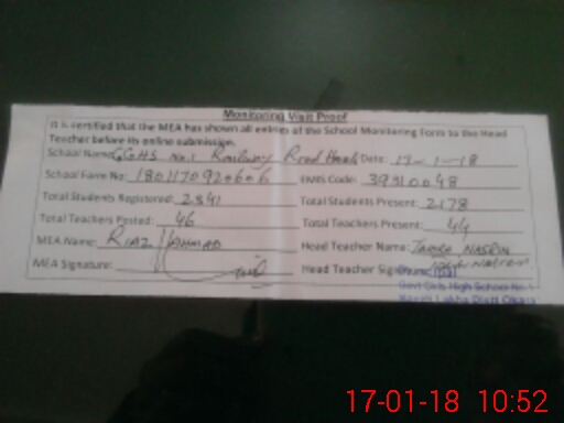 | Certified that this School was Inspected by the Undersigned MEA/DMO Today and the Information Stated Above is as Per Record. | |||||
