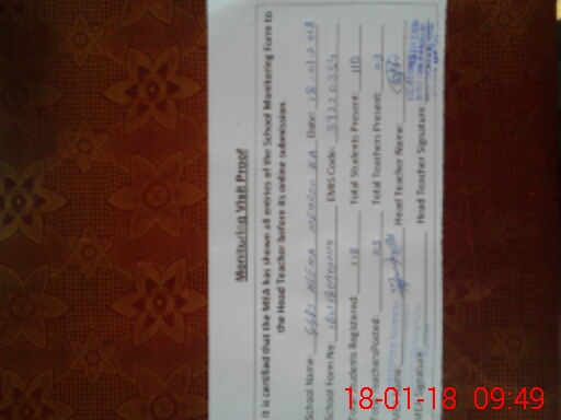 | Attendance Register | Head Teacher | MEA with School | Visit Proof |