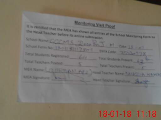 | EMIS Code: 35430978 | Name of School: GGCMS DERA RAJ MUHMMAD | |||