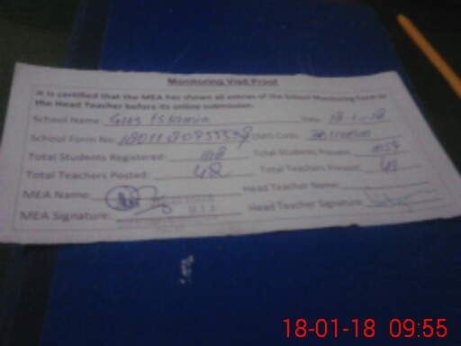 | Attendance Register | Head Teacher | MEA with School | Visit Proof |