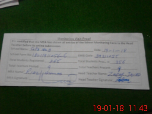 | Certified that this School was Inspected by the Undersigned MEA/DMO Today and the Information Stated Above is as Per Record. | |||||