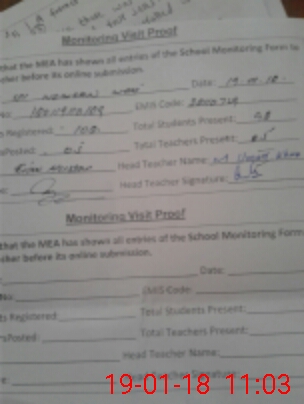 | Attendance Register | Head Teacher | MEA with School | Visit Proof |