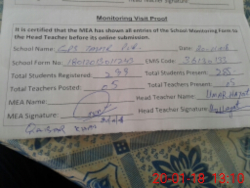 | EMIS Code: 36130133 | Name of School: GPS TAHIR PUR MULTAN MOZA TAHIR PUR MULTAN | |||